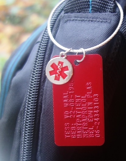 U kunt ook kiezen uit een slotkabeltje of een sleutelring. U ontvangt een medische rvs bedel dubbelzijdig aan uw sleutelhanger.